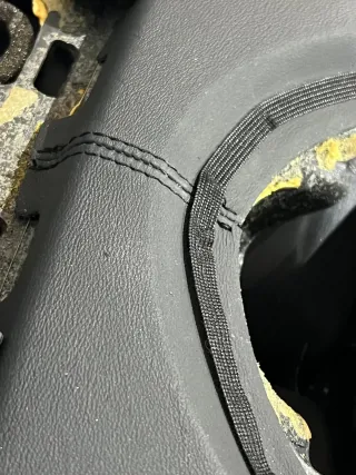Leder löst sich nicht, ist nicht ausgeblichen oder gerissen.