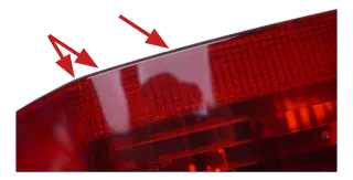 Glas ist im unteren Bereich mehrfach leicht gerissen. Die Rückleuchte beschlägt von innen.