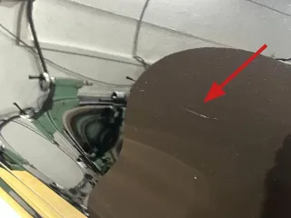 Die Tür hat zwei kleine Dellen sowie einen längeren, bereits ausgebesserten Schlüsselkratzer über 2/3 der Tür (siehe Fotos)